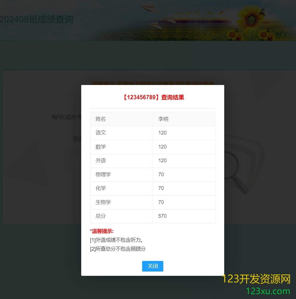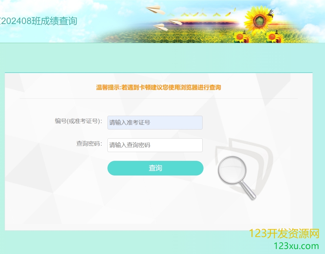 这个成绩查分系统用PHP编写,如需下载成绩查分网源码,查分系统PHP源码下载请联系123开发资源网进行下载、